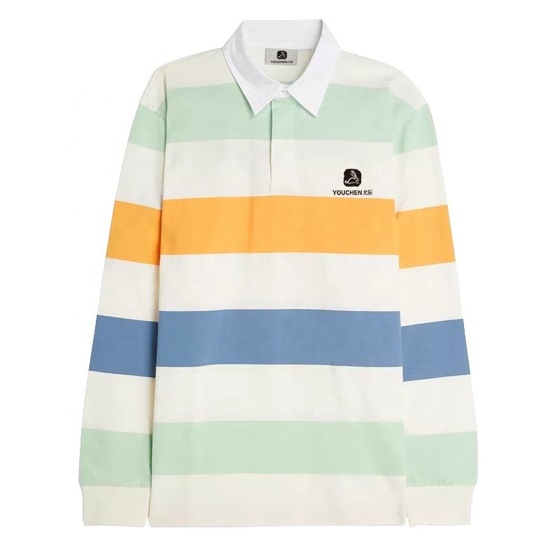 Product Name | Men 100% Cotton Striped Long Sleeves Rugby Polo Shirt for Men Custom Embroidered Logo | ||||||