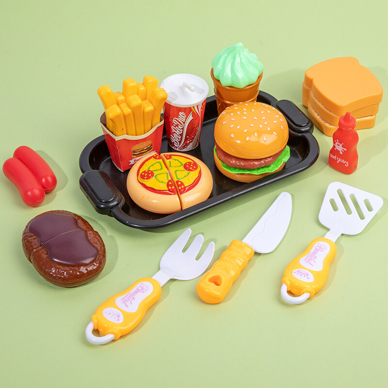 9PCS 17PCS Children Kitchen Food Toys Set Dessert Ice Cream Set Play House Simulation Toys Burger Fries Hot Dog Set Cash Register Safe And Nontoxic Fun Games For Kids