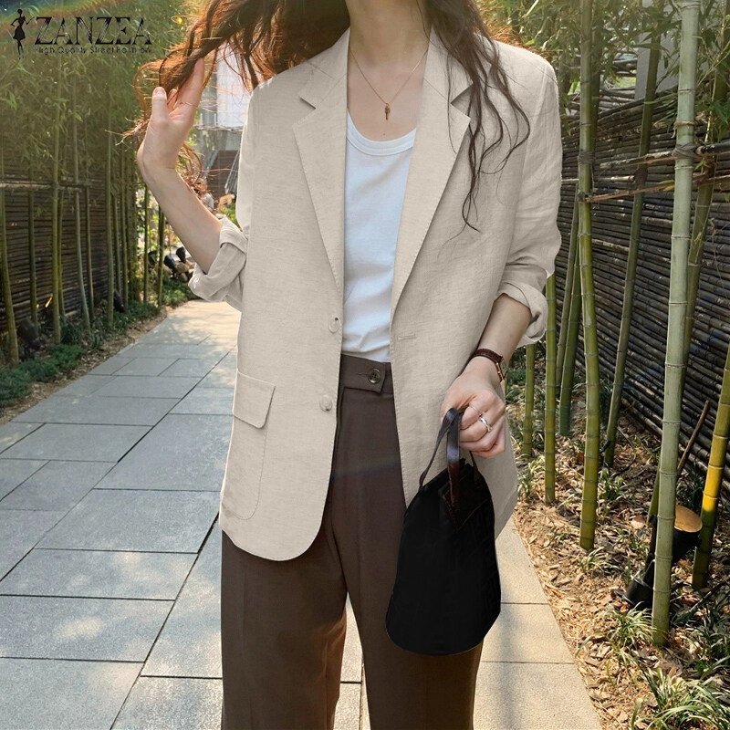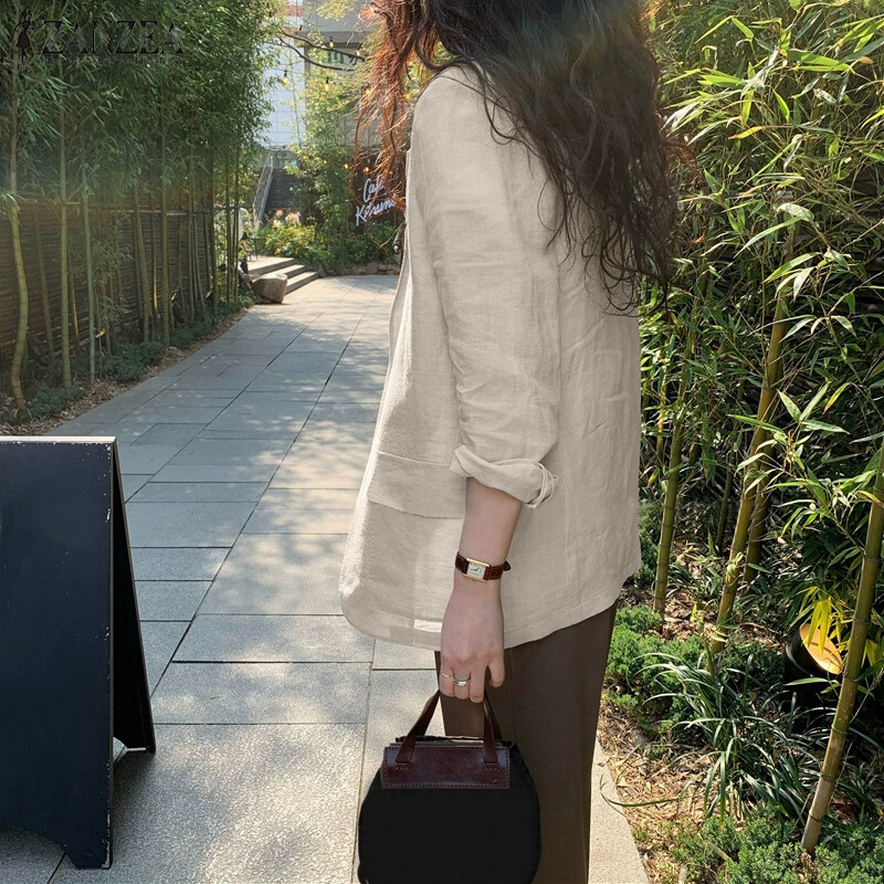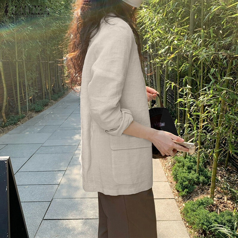 ZANZEA Korean Style Women Cotton Long Sleeve Casual Blazer Plain Loose Suits Outwear