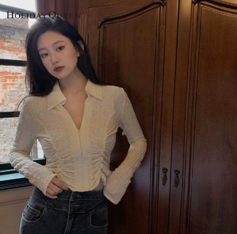 HolidayQueen Fall Women's Thin V-neck Design Top Shirt S M L XL Free Shipping Women's clothingHQP0589