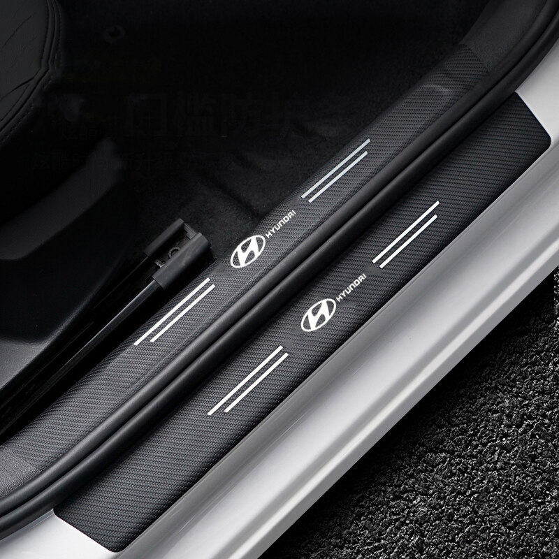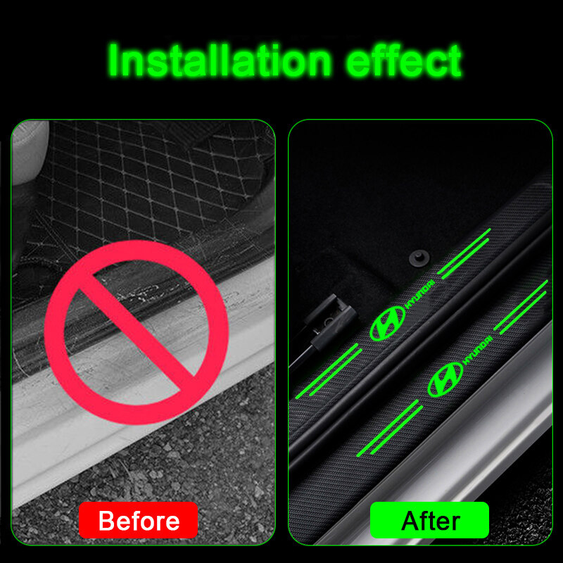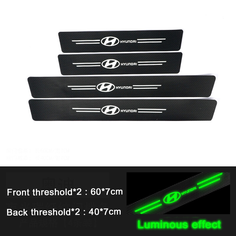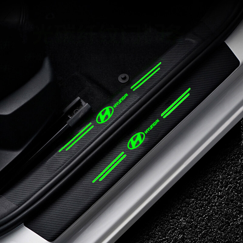 4PCS Carbon Fiber Pattern Car Door Threshold Sticker Auto Door Sill Anti-scratch Decals Protector Luminous Strip Accessories For Hyundai Tucson Avante Ioniq Kona Elantra IX25 IX30 IX45