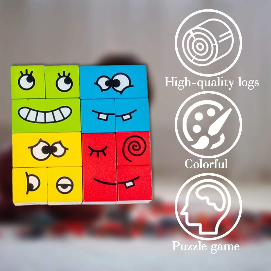 Wooden Expressions Matching Block Puzzles Face | Parent-Child Building Block Jigsaw Board Game | Emotional Educational Puzzle Toys for Kids Boys and Girl | Gift for 3-8 Yeahs Old