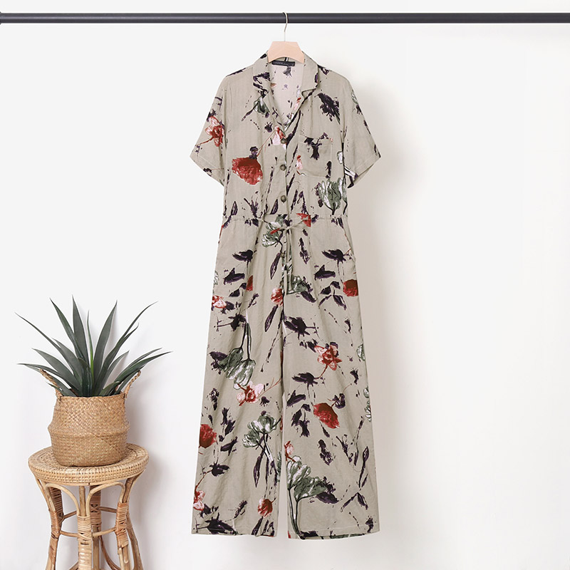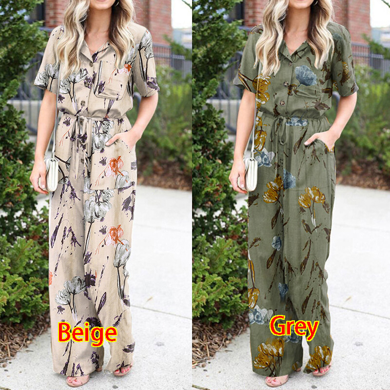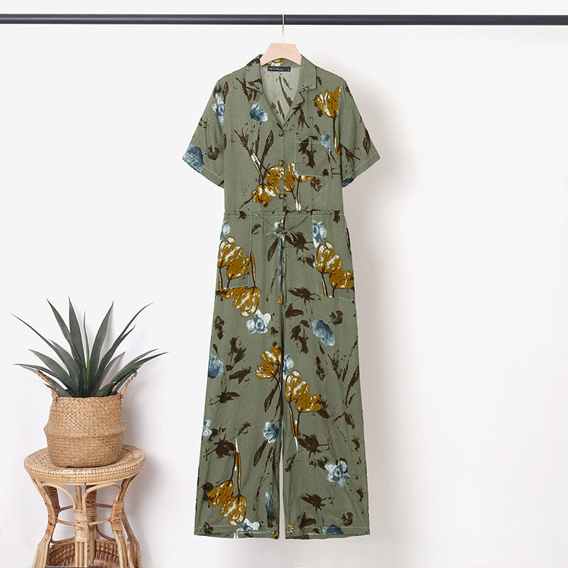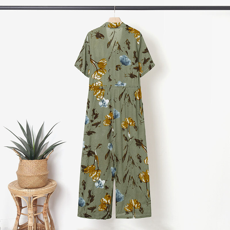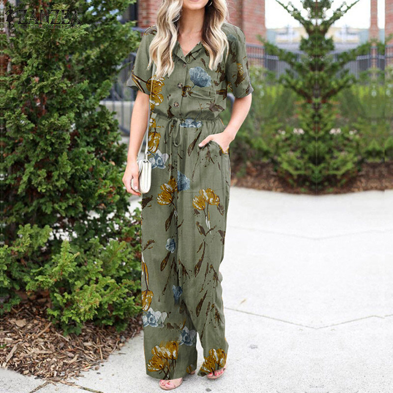 ZANZEA Women Floral Print Jumpsuit Dungaree Summer Short Sleeve Tunic Romper Playsuit
