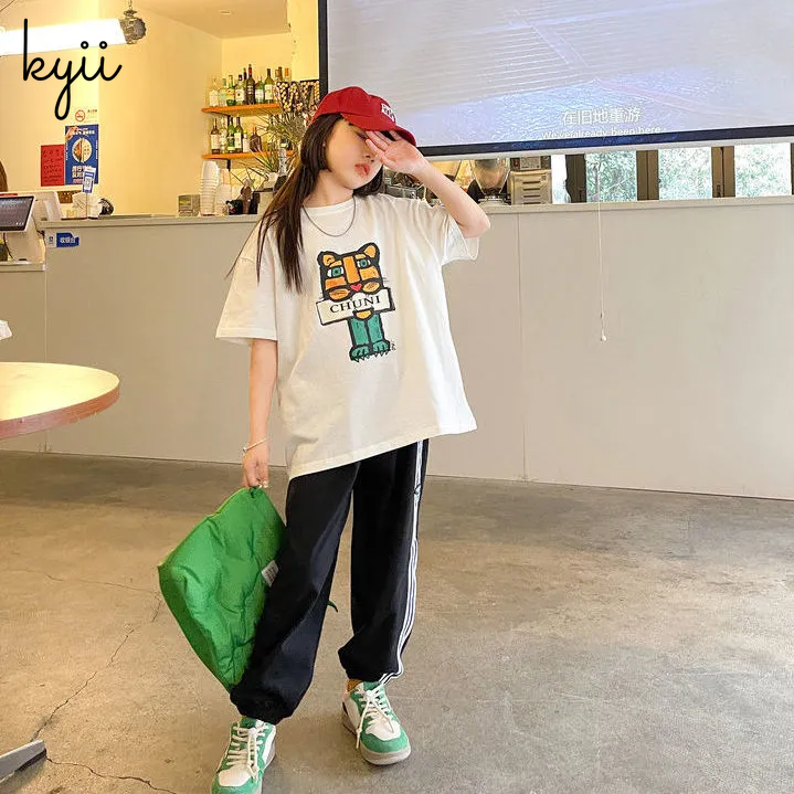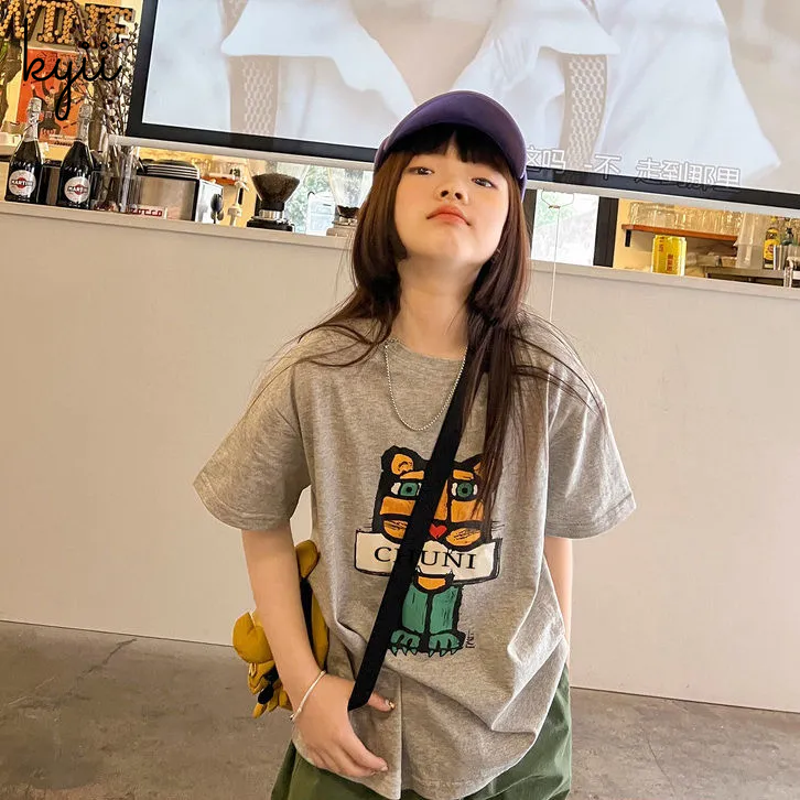 KYII Girls short sleeved T-shirt Summer children cartoon loose Top ky22083