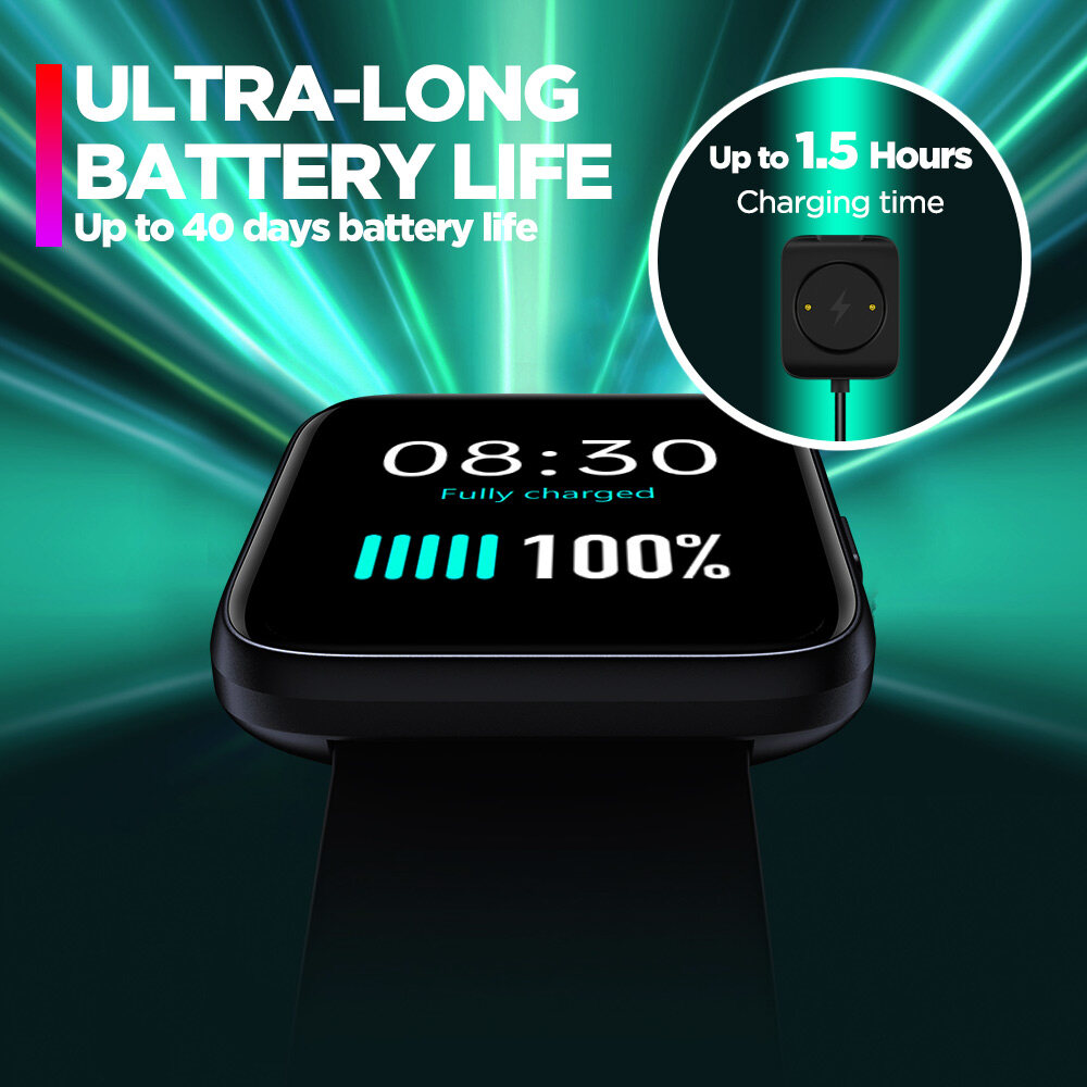 Battery capacity: 180 mAh Battery type: Li-Pol Standby time in power-save mode, up to: 40 days Training time in power-save modes, up to: 15 days Training time with full GPS and HR tracking enabled, up to: 40 Hours Charging time: 1.5 Hours *Battery life may vary according to usage, settings, operating conditions, and other factors, so the actual results may differ from the laboratory data.
