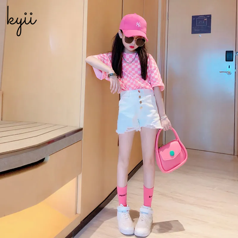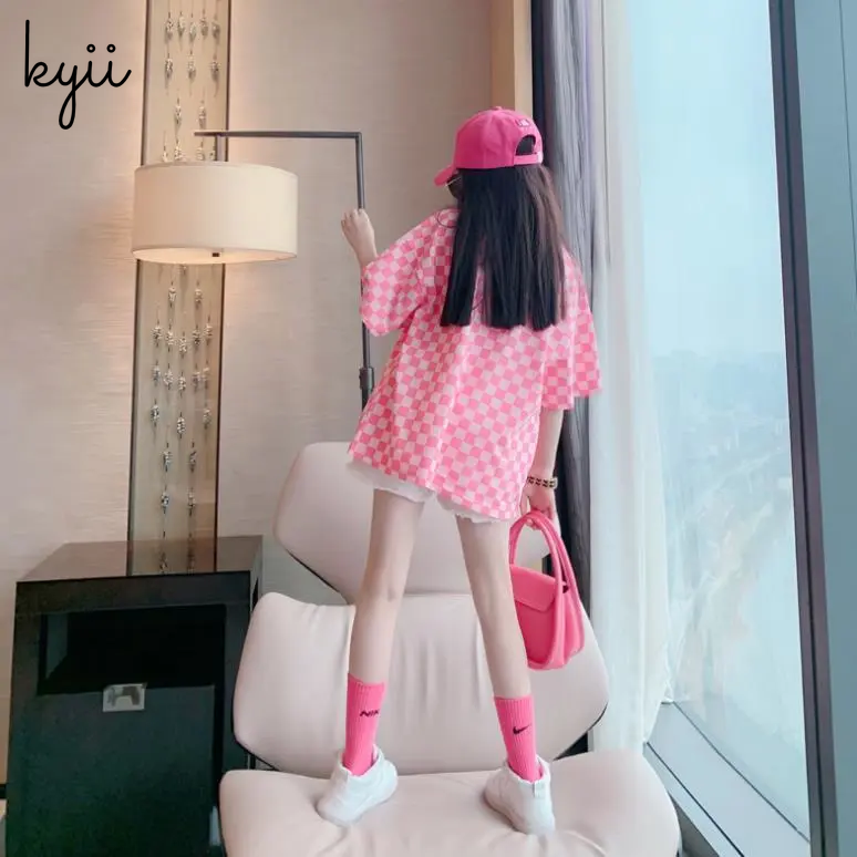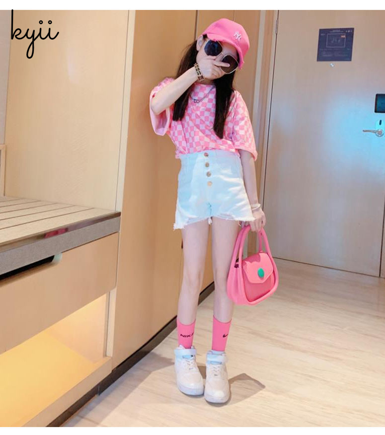 KYII Girl Summer children shirt Versatile short sleeve Top ky22145