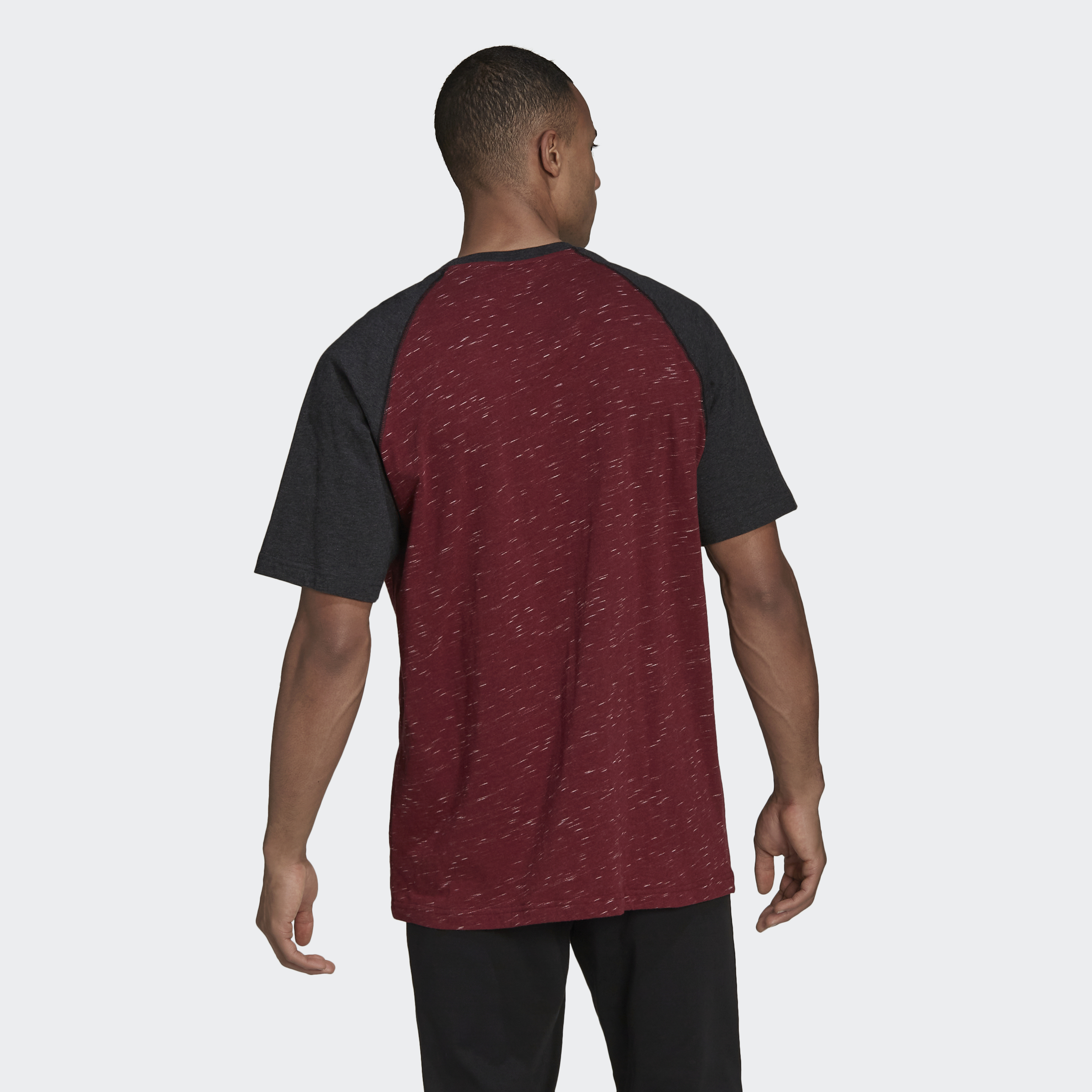Comfort and style. This adidas t-shirt has plenty of both. This shirt is made of all-cotton single jersey that is super soft, and it has a crewneck and raglan sleeves for a look that's totally classic. It's cut to fit a bit loose, so you can roll through whatever's on your to-do list without distractions. A small adidas Badge of Sport on the upper chest signs off on the whole package.