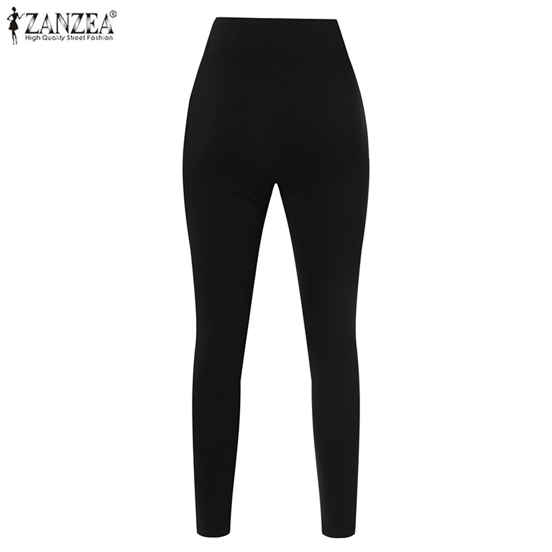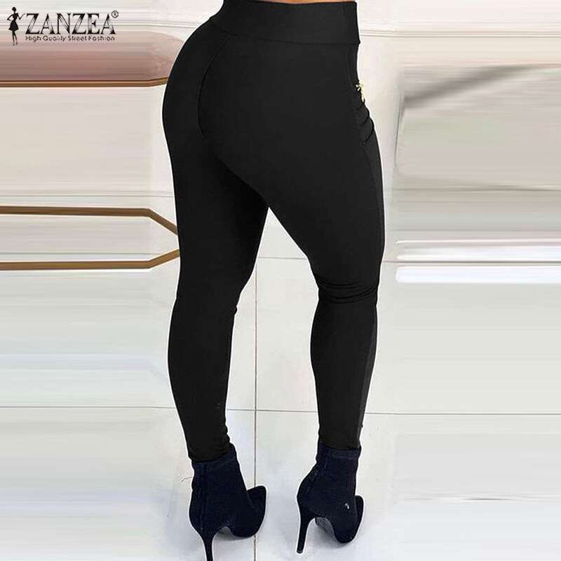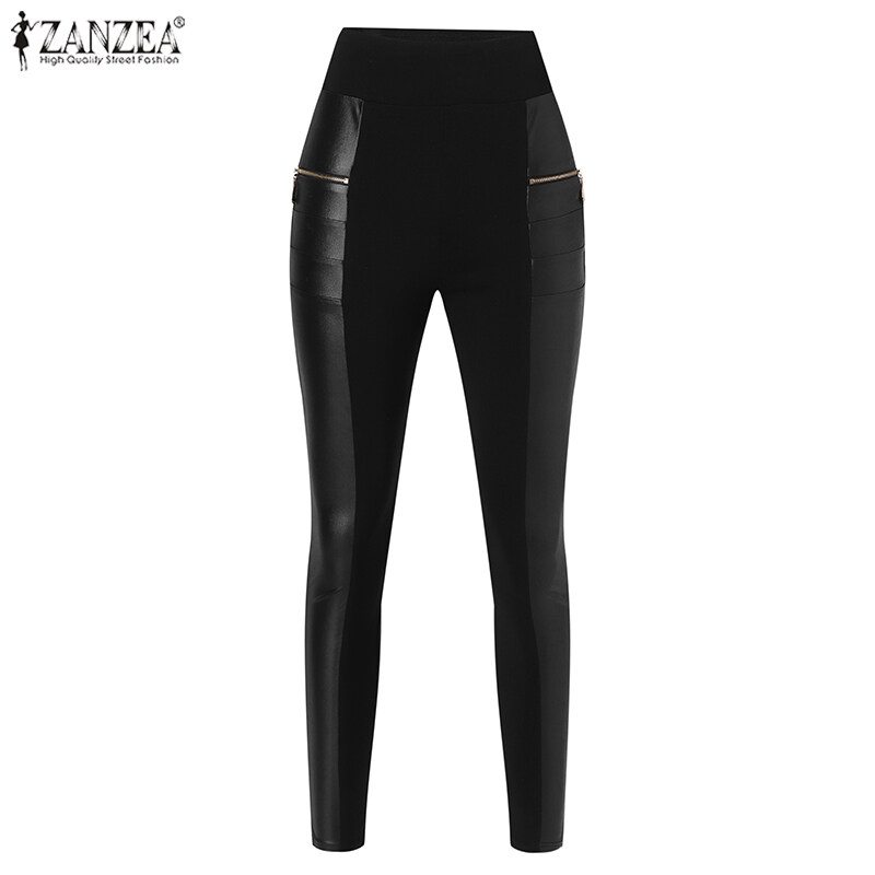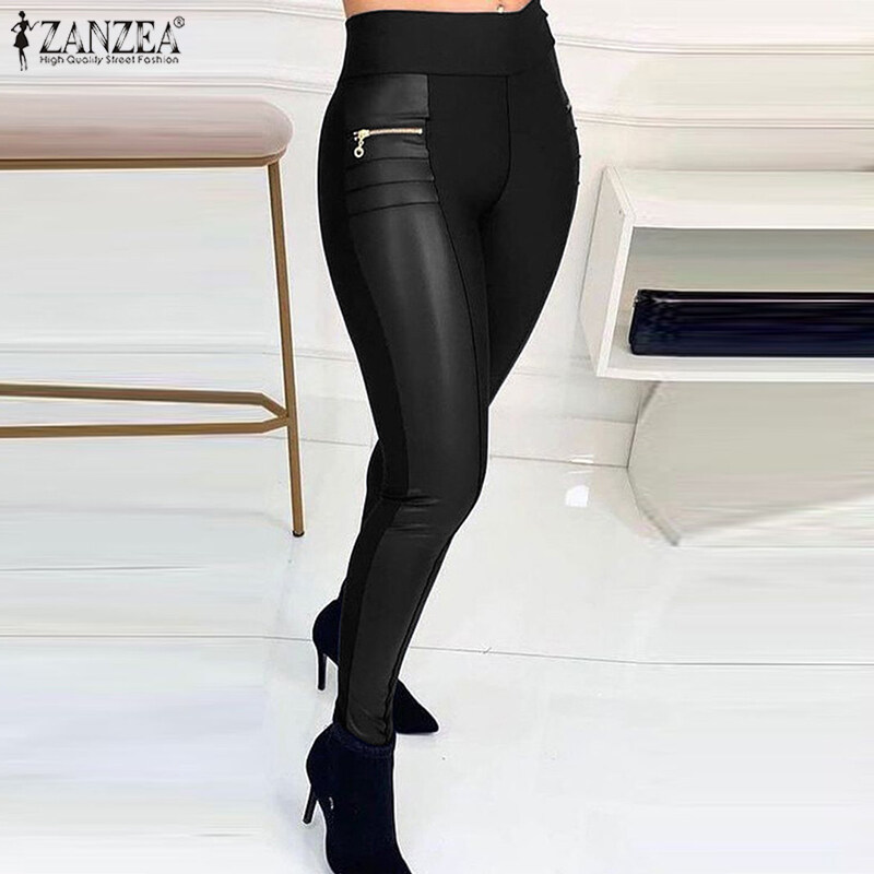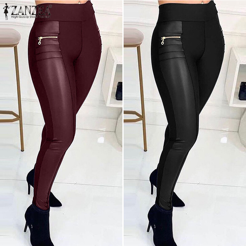 ZANZEA Women Fashion Long Pants Legging Faux Leather Elastic Waist Fit Skinny Trouser #15