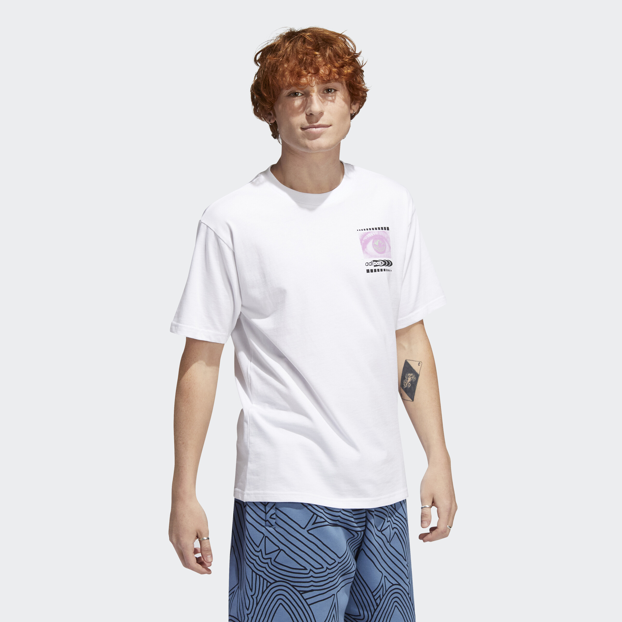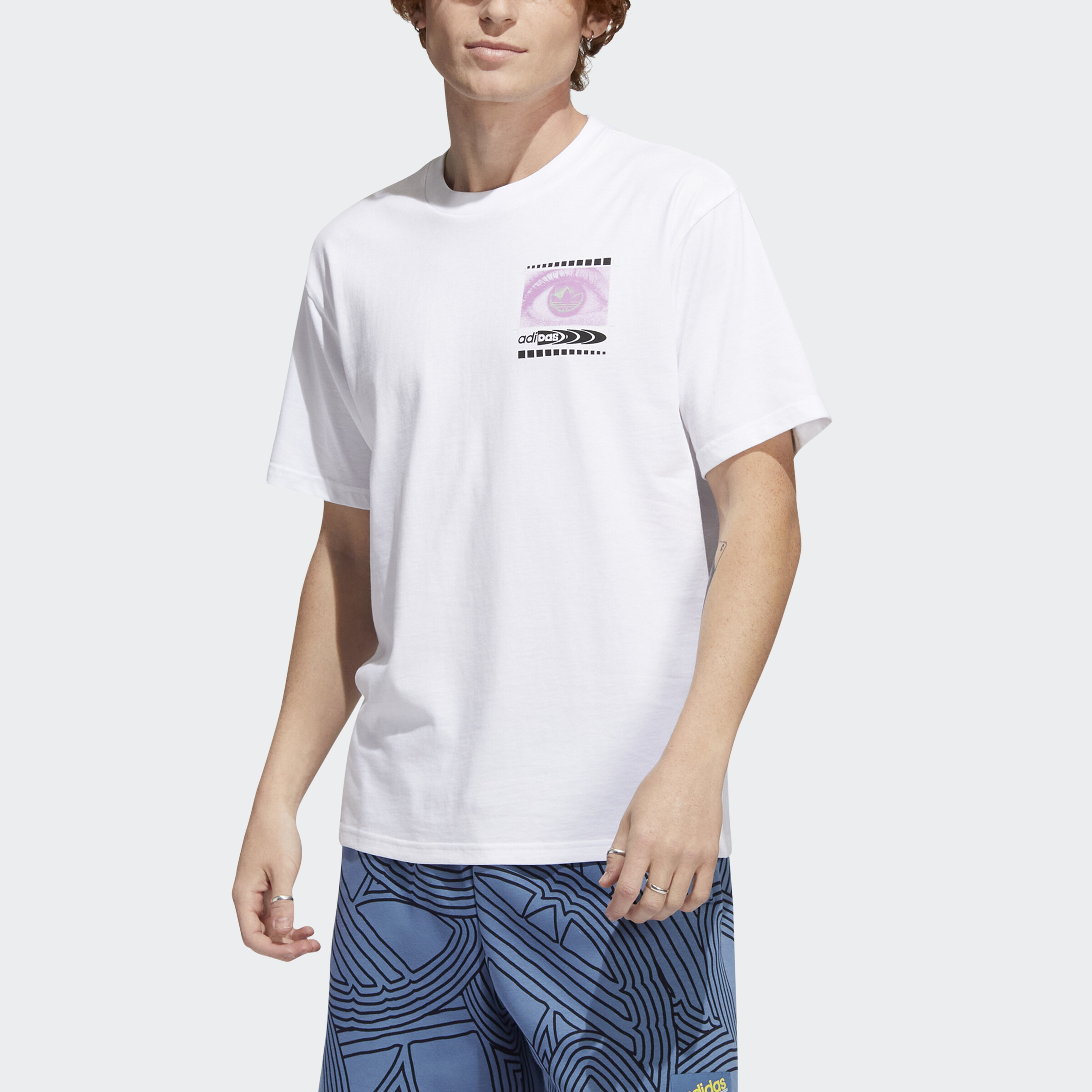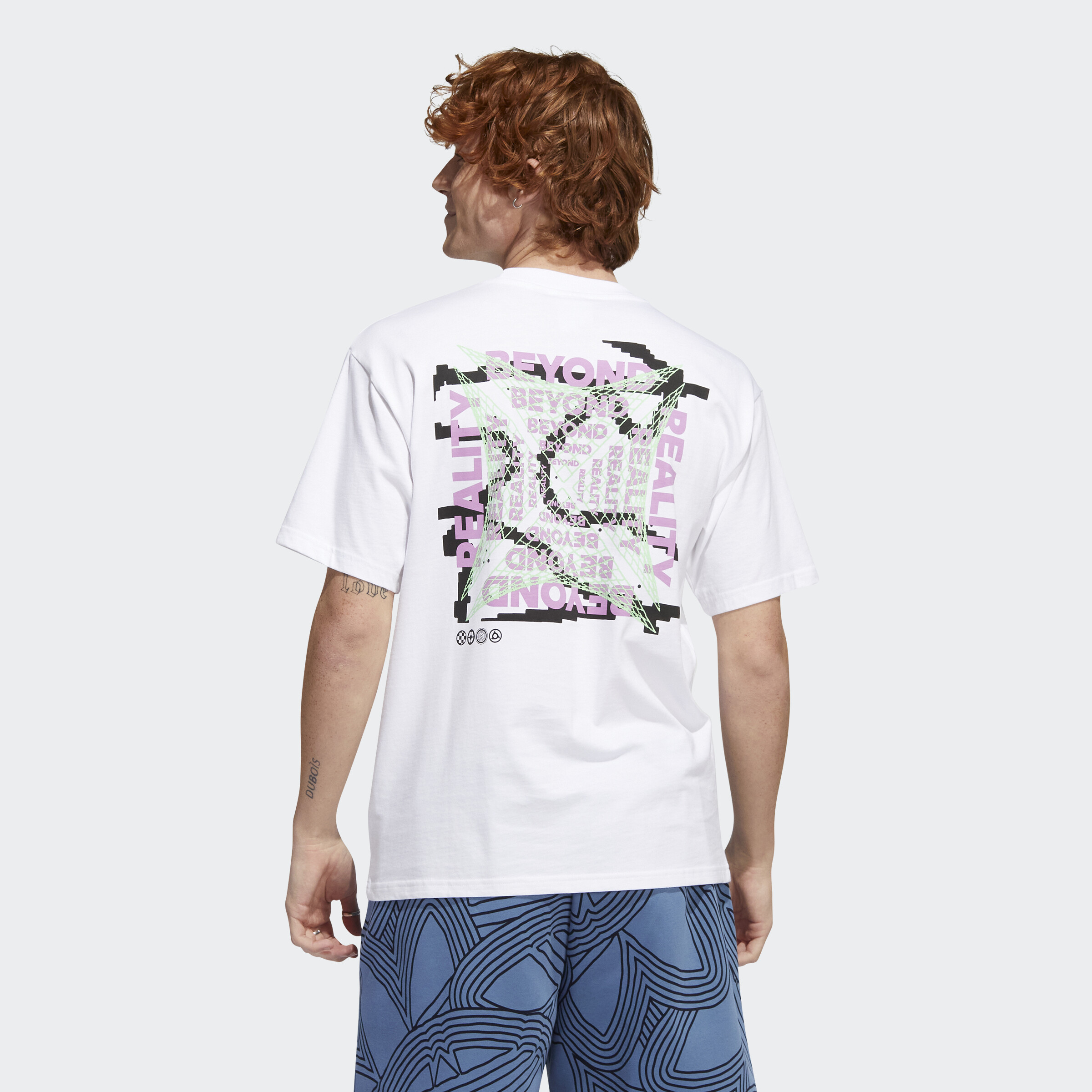 Take on a different side of life. This adidas t-shirt invites you to step into a new dimension, one where sport and music are woven together to create life beyond reality. Original artwork screenprinted on both sides delights the eye and intrigues the mind, representing a conceptual web that welcomes a fresh perspective. Made of pure, soft cotton, it gives you all-day comfort and the perfect fit. Our cotton products support more sustainable cotton farming.