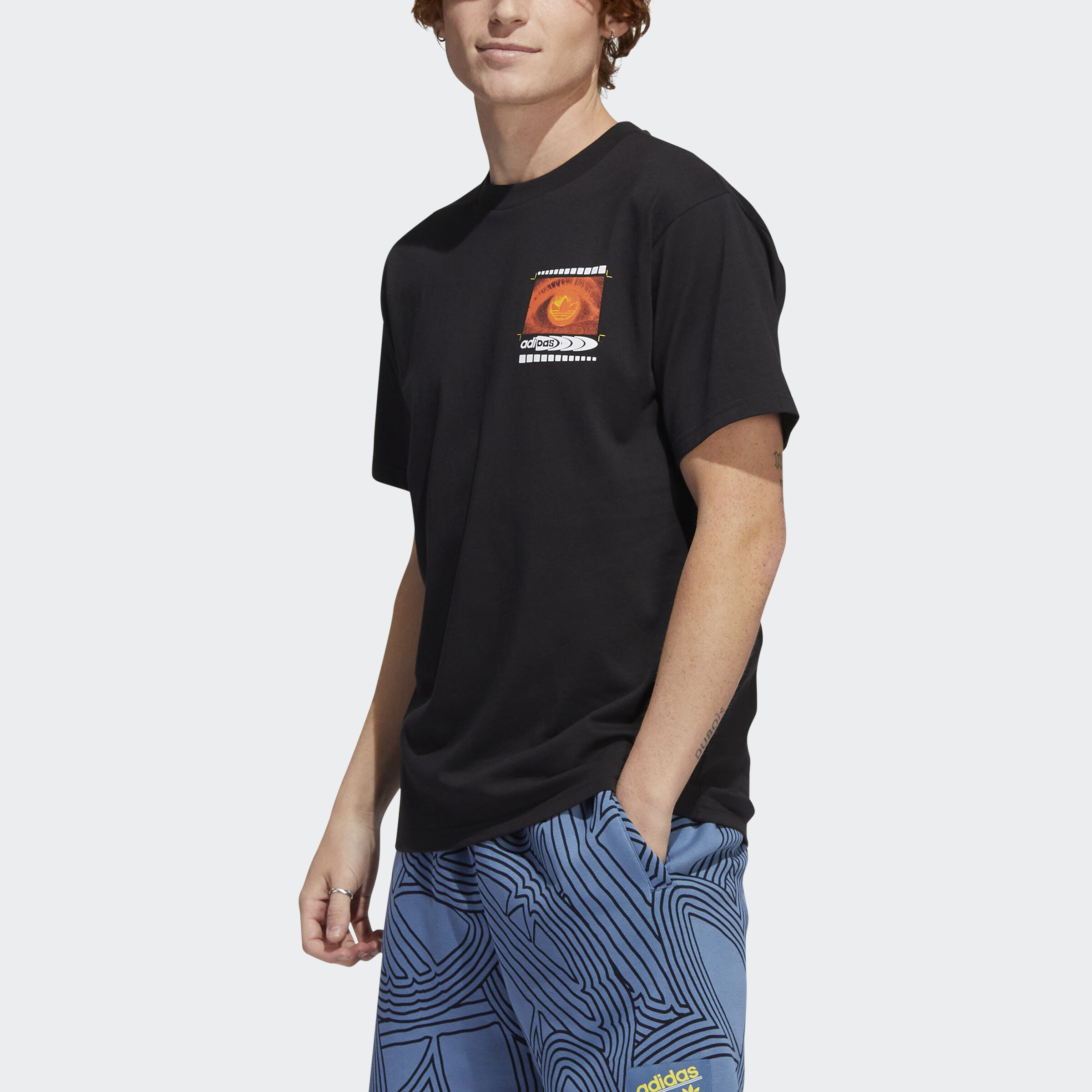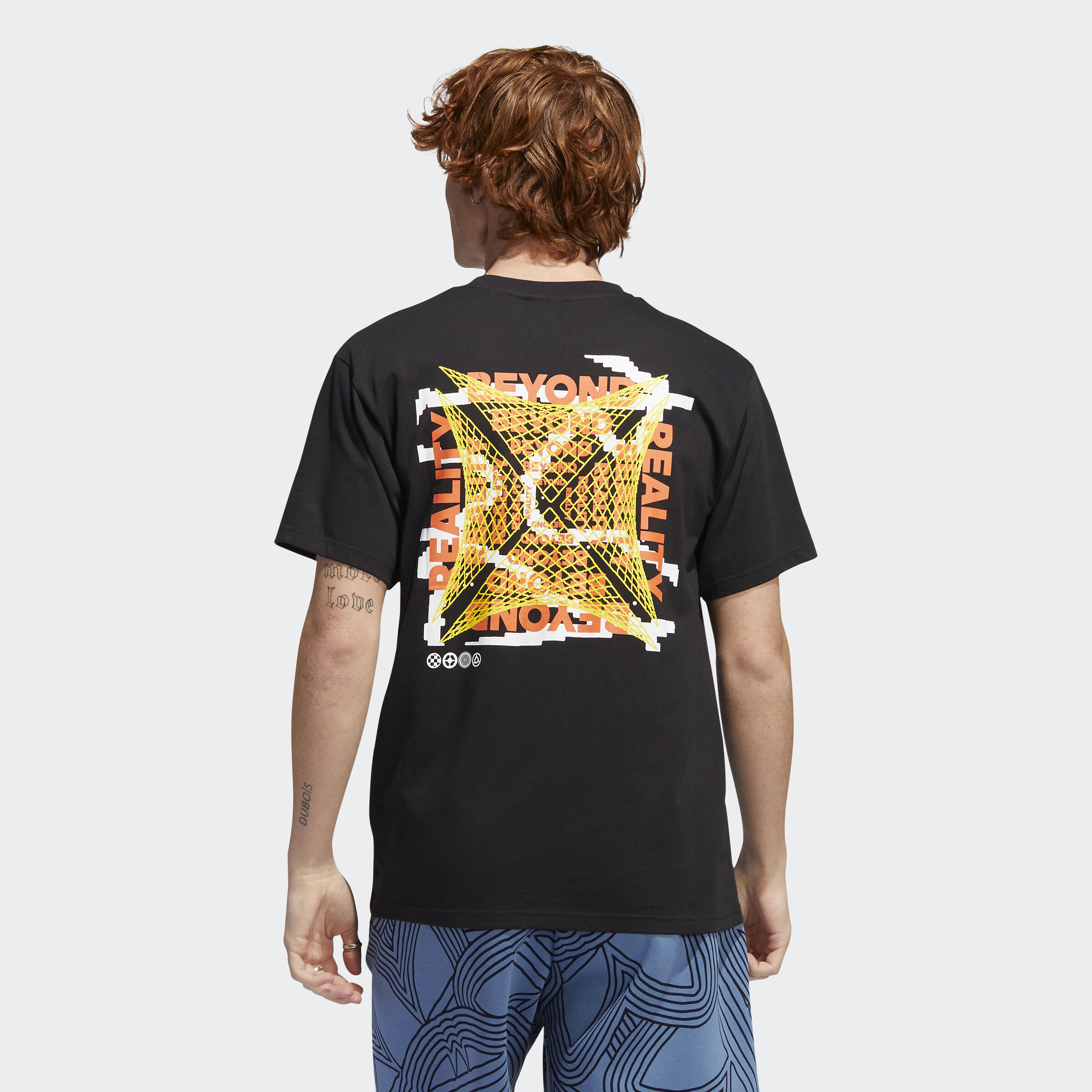 Take on a different side of life. This adidas t-shirt invites you to step into a new dimension, one where sport and music are woven together to create life beyond reality. Original artwork screenprinted on both sides delights the eye and intrigues the mind, representing a conceptual web that welcomes a fresh perspective. Made of pure, soft cotton, it gives you all-day comfort and the perfect fit. Our cotton products support more sustainable cotton farming.
