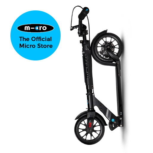 The Micro Metropolitan Deluxe Black has an ergonomic design making it the perfect all rounder. With its wide, curved T-bar and large wheels it offers an unmistakeable cruiser feeling. In addition, the front suspension provides more driving comfort. The integrated tube light and the reflectors on the brake ensure a safe ride in the dark. The front handbrake is handy for easy urban use. A cool and practical companion for everyday life! For good visibility, it has a micro Tubelight on the handle bar.