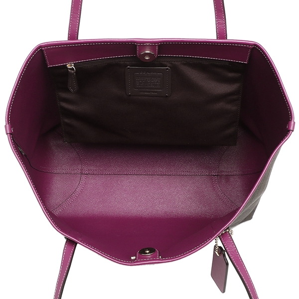 Coach Handbag Tote Shoulder Bag City Tote In Signature Canvas Brown Dark Magenta # 5696